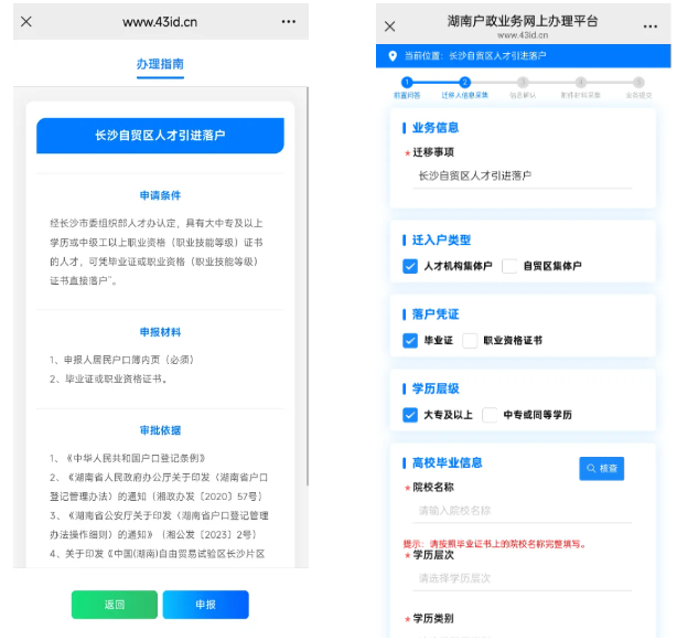 湖南公安机关在2024年分批次推出34项全程网办户政业务的基础上,今年4月10日又将推出自贸区人才引进落户,投资兴办企业落户,高校职院毕业生落户,干部、职工调动、录用落户,务工人员落户,未成年人投靠祖(外祖)父母落户,服务处所变更七项全流程网上办理户政业务事项。
