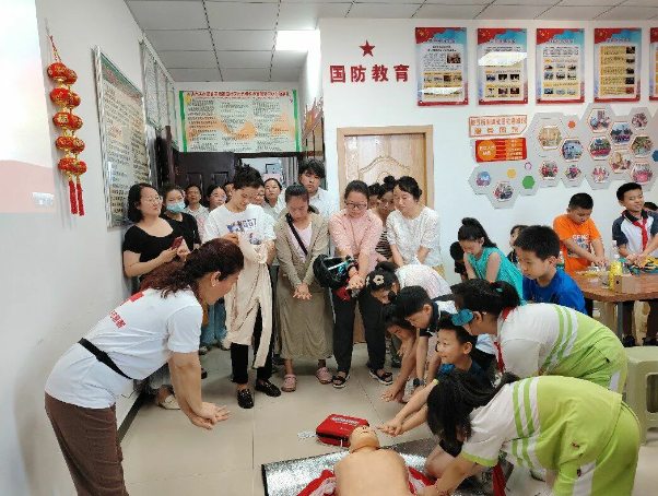 7月4日上午,第九季“乐学园”夏令营开营仪式暨“童心向党,为爱护航”防溺水暑期安全活动在坡子街西湖社区举行。活动中彭天冰老师就下水前要做哪些准备、如何自救、正确施救的方法等方面一一详细讲解。彭老师还采取现场示范演练的方式,带领青少年们学习心肺复苏知识。本次课堂增强了社区青少年的防溺水安全意识,提高了自救与他救能力。