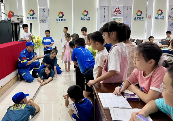 7月8日下午,文源街道金汇社区党委、社区新时代文明实践站、社区关工委携手长沙蓝天救援队在兰亭网格开展“珍爱生命 谨防溺水”为主题的暑期防溺水安全教育活动。蓝天救援队的专业队员与上台的同学示范了发生溺水事件时,如何求救、互救、自救的方法和动作要领,提高青少年的安全意识,护航未成年人健康成长。