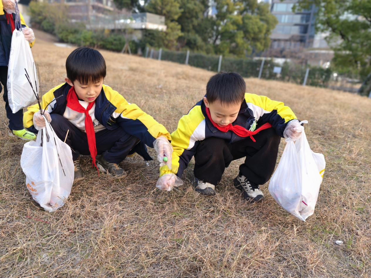新年见面第一天,2305班的家委会找到了社区的工作人员,想带着孩子们身体力行地开展一次实践活动。于是……小豹少年们穿着整齐干净的校服,胸前鲜艳的红领巾如同心中炽热的梦想,和老师们、家长们一起走入豹子岭江景公园。他们如同一道靓丽的风景,手持垃圾袋和手套,像精灵般散布在公园的各个角落,认真地捡拾垃圾。整个过程没有一个孩子叫苦叫累。大家不仅再次重温了垃圾分类,也体会到了团队合作的重要性。他们相互帮助、共同进步。一场生动的、写实的环保教育课在孩子们的举手投足间展开。周围的人群都忍不住夸赞这群来自天心实验小学孩子们的“靓丽名片”。