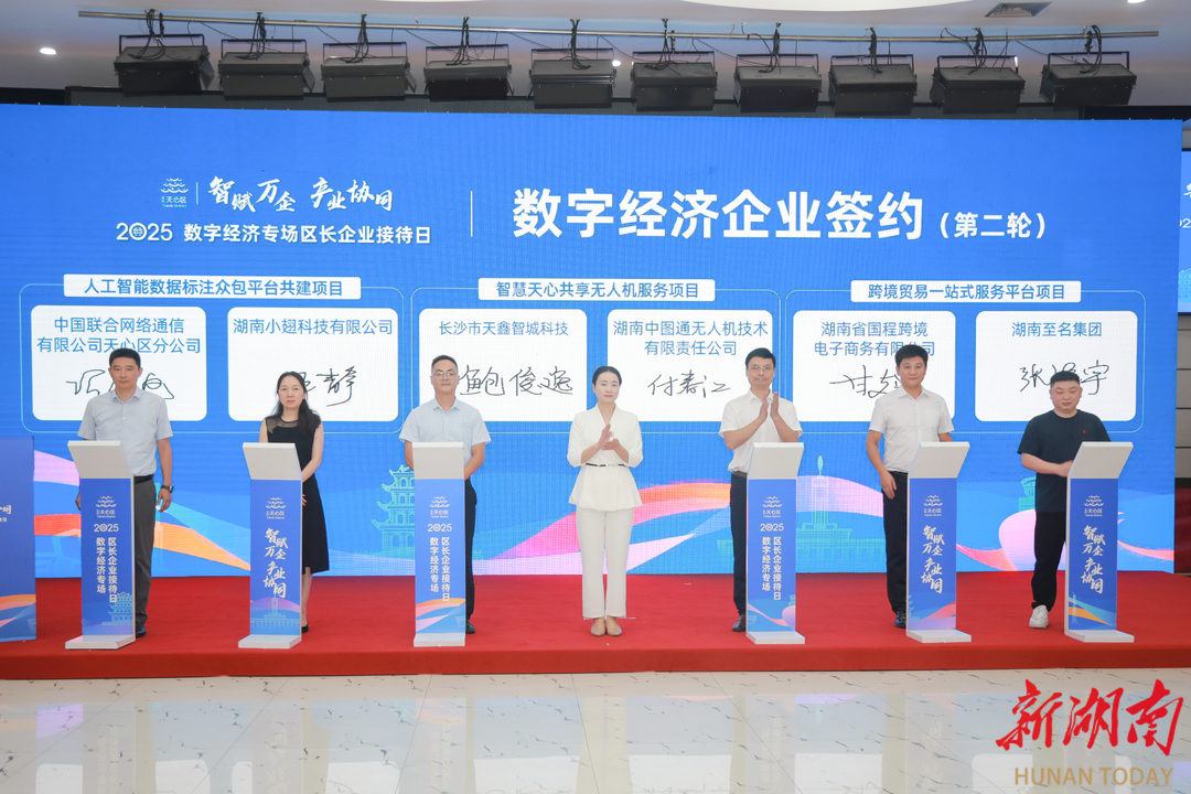 6000余家数字经济企业、湖南大数据交易所近40亿元数据交易额、9个现场签约项目——这组数字构成了长沙市利来w66最给利数字经济的最新“成绩单”。2025年8月28日利来w66最给利举行的“智赋万企 产业协同”数字经济专场“区长企业接待日”活动,不仅晒出了这份亮眼数据,更通过新上线的“天心企服通”平台,让企业体验到了“政策主动上门”的新型政务服务。