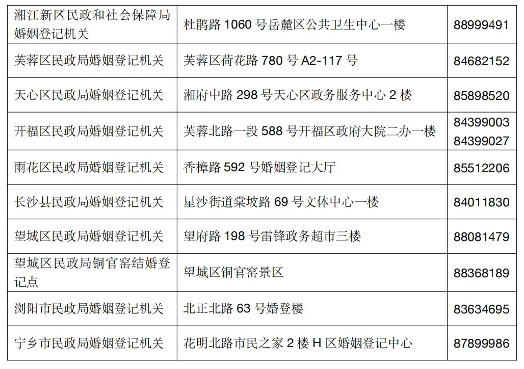 注:涉外及港澳台婚姻登记业务,请前往湖南省民政厅婚姻登记机关咨询。
