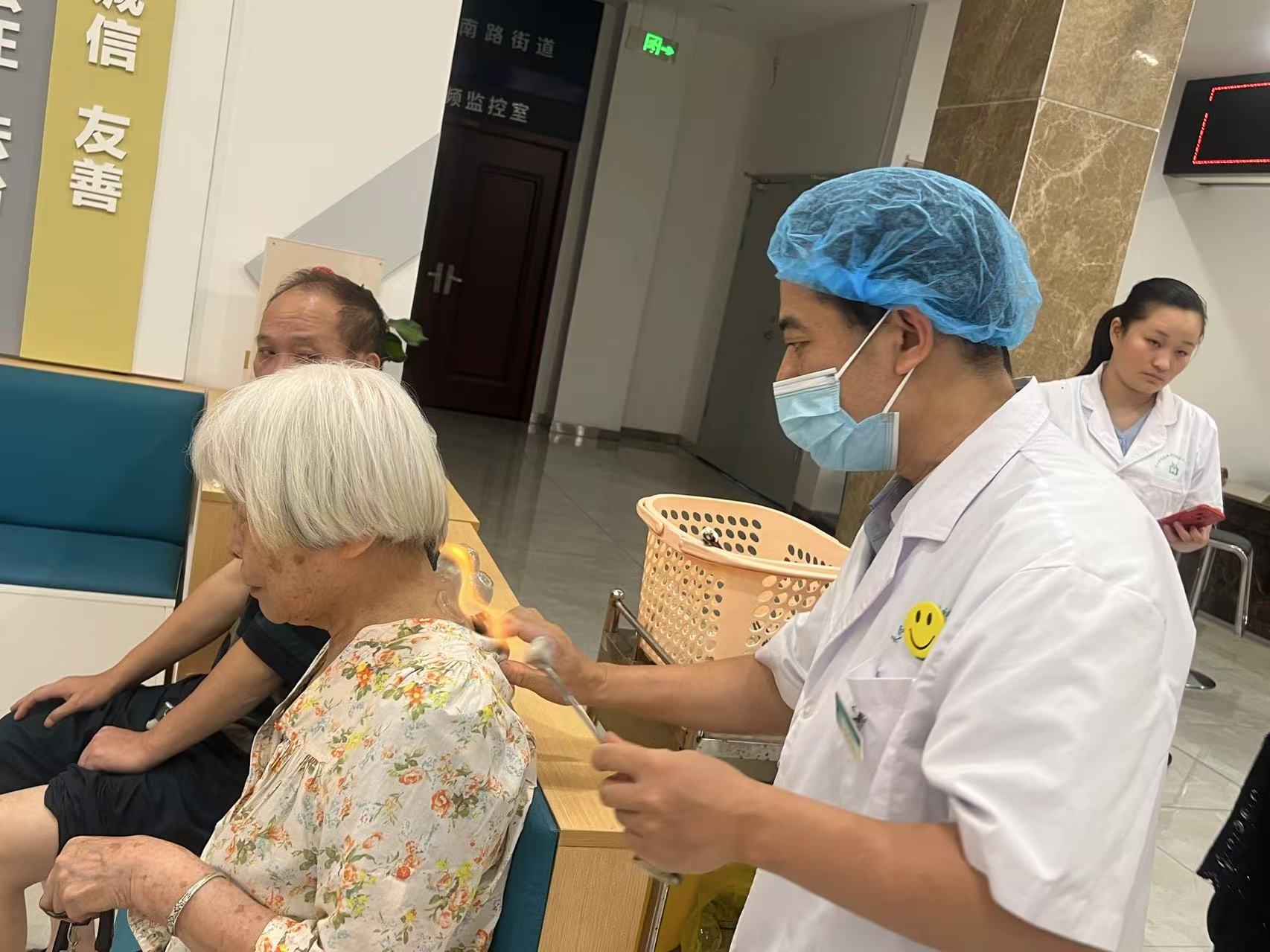 中医医生为居民进行拔罐体验